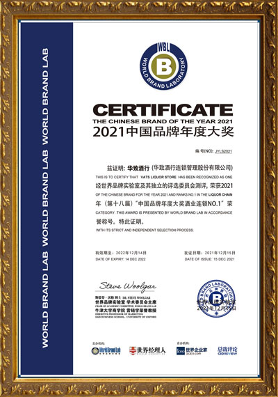 12月15日,由世界品牌實驗室(WorldBrandLab)頒發(fā)的2021年 “中國品牌年度大獎”評選在北京揭曉,華為、國航、飛鶴等35個活躍在中國經(jīng)濟舞臺的領(lǐng)軍品牌入選“2021年中國品牌年度大獎”。憑借卓越的品牌影響力和穩(wěn)定的市場表現(xiàn),華致酒行再次榮獲中國品牌年度大獎——酒業(yè)連鎖NO.1榮譽獎項。這也是華致酒行第四次榮獲該項大獎。