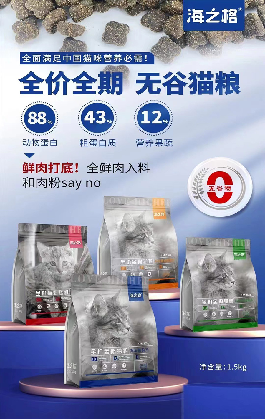 主要產(chǎn)品:海之格貓/犬糧、濕糧、寵物零食貓罐、寵物零食貓條