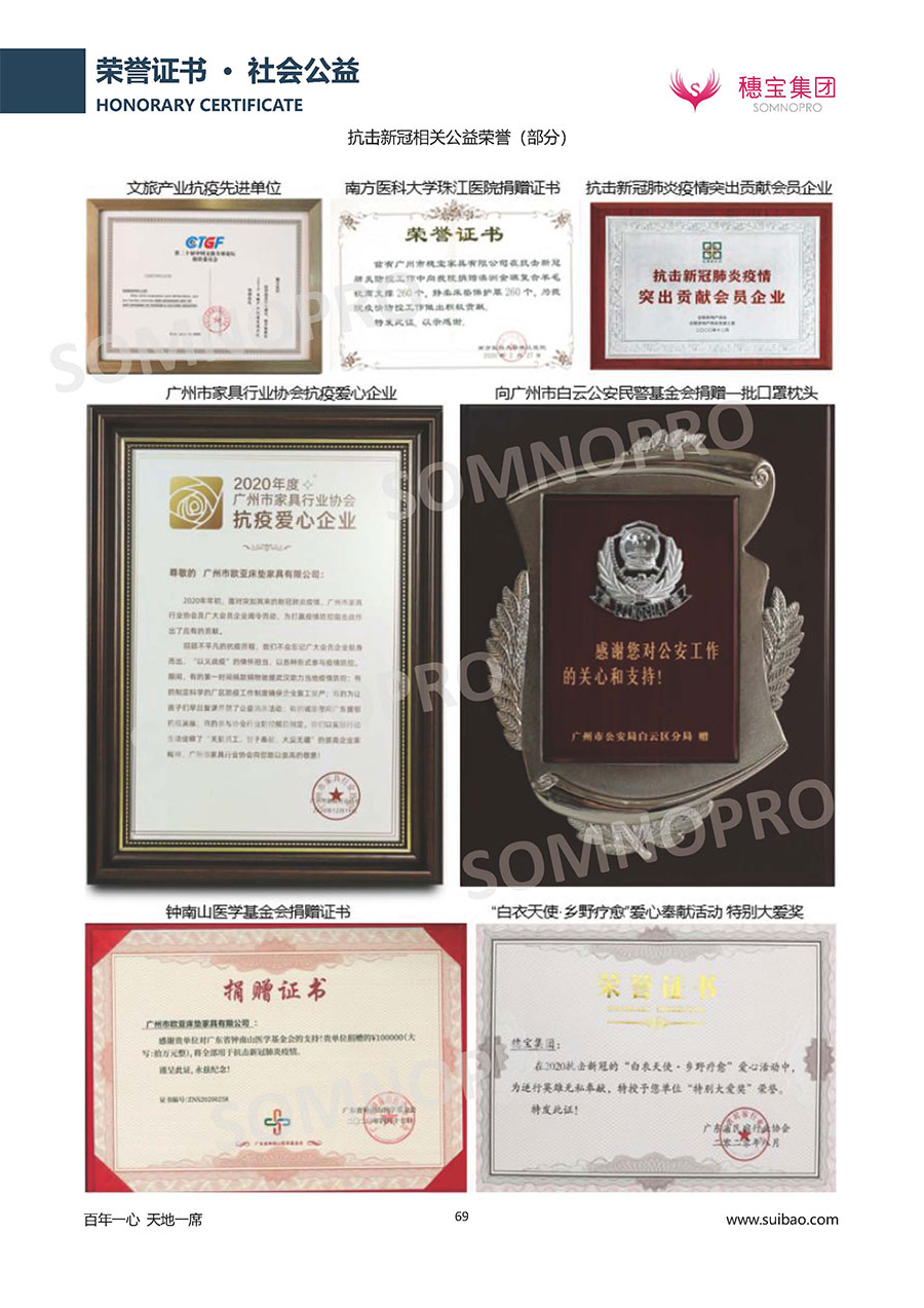 穗寶集團(tuán)遍訪全球,深度整合世界優(yōu)質(zhì)資源,專注睡眠研究,與世界家具材料行業(yè)領(lǐng)導(dǎo)者禮恩派集團(tuán)結(jié)成戰(zhàn)略伙伴,成立睡眠研究中心和彈簧網(wǎng)檢測中心,引入床墊鋪面耐久性測試儀,材料拉力測試儀,床墊撓度曲線測試儀,為產(chǎn)品注入優(yōu)秀基因;成功研發(fā)推出IFEEL深睡感知系統(tǒng)、X7研發(fā)系統(tǒng),關(guān)注消費(fèi)者每一個細(xì)微的睡眠需求,致力于以科學(xué)的方式創(chuàng)造優(yōu)異的物理與心理助眠條件,幫助現(xiàn)代人獲得優(yōu)質(zhì)深度睡眠;不斷創(chuàng)新進(jìn)取,軀位步技術(shù)、T-GUARD衡力支承系統(tǒng)等多項成果獲國內(nèi)國際專利。