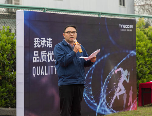 公司高階管理層在升旗儀式上帶頭簽署品質(zhì)承諾書,以此正式拉開了品質(zhì)月活動的序幕。