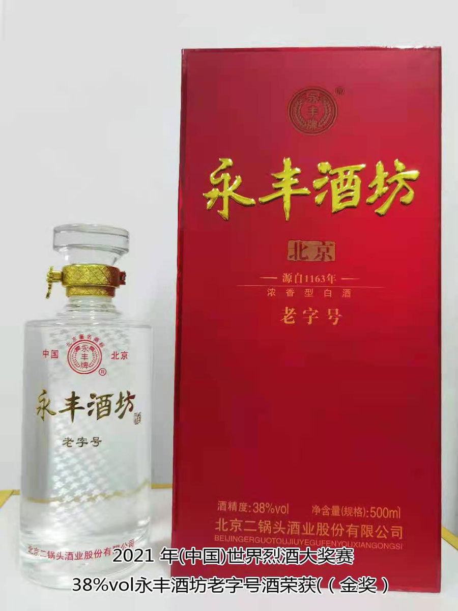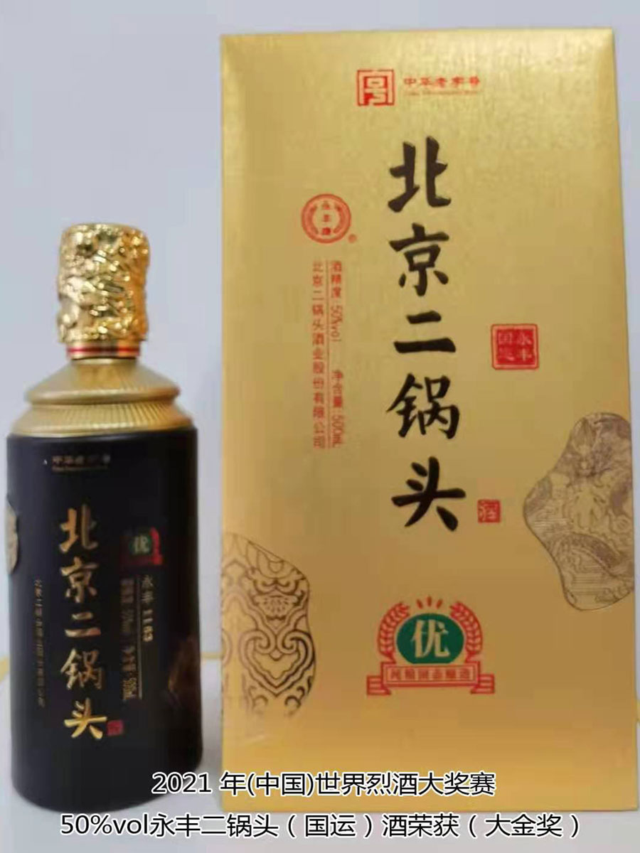 北京二鍋頭酒業(yè)股份有限公司傳承老北京二鍋頭傳統(tǒng)釀造技藝,產(chǎn)品選用優(yōu)質(zhì)高粱為原料,以麩曲為糖化發(fā)酵劑,采用老五甑發(fā)酵法、混蒸混燒、看花接酒、掐頭去尾、長期儲存、精工勾兌而成。產(chǎn)品多次獲得各種優(yōu)質(zhì)產(chǎn)品稱號,“永豐牌”商標(biāo)2000年度、2004年度、2007年度連續(xù)三屆被北京市工商行政管理局認定為北京市著名商標(biāo);2003年9月,“永豐”二鍋頭、京王子酒被評為北京市優(yōu)秀新產(chǎn)品獎;2004年,被授予“中國白酒質(zhì)量優(yōu)秀產(chǎn)品”及首都市場“質(zhì)量、信譽、服務(wù)”優(yōu)秀企業(yè)、優(yōu)質(zhì)產(chǎn)品稱號;2006年11月,被評為“中國歷史文化名酒”;2007年12月,被評為“AAA”級信用企業(yè),同年榮獲“中國質(zhì)量過硬知名品牌”;2011年5月,“永豐”牌被中華人民共和國商務(wù)部評為“中華老字號”;2021年10月,在2021國際酒類(中國)大獎賽中,北京二鍋頭酒業(yè)股份有限公司共獲得五枚金牌,其中38%vol永豐酒坊老字號酒、46%vol永豐品鑒酒、52%vol醉流霞瓷瓶酒、50%vol永豐粱大俠(典藏)酒四款產(chǎn)品榮獲“金獎”,50%vol永豐二鍋頭(國運)酒榮獲“大金獎”。此次大獎賽北京二鍋頭酒業(yè)股份有限公司榮登“金獎”之首,得到了國際酒類(中國)大獎賽組委會及全國頂級評酒大師、酒業(yè)泰斗專家們的一致好評,肯定了北京二鍋頭酒業(yè)股份有限公司專業(yè)技術(shù)人員高超的技藝和敬業(yè)的工匠精神。