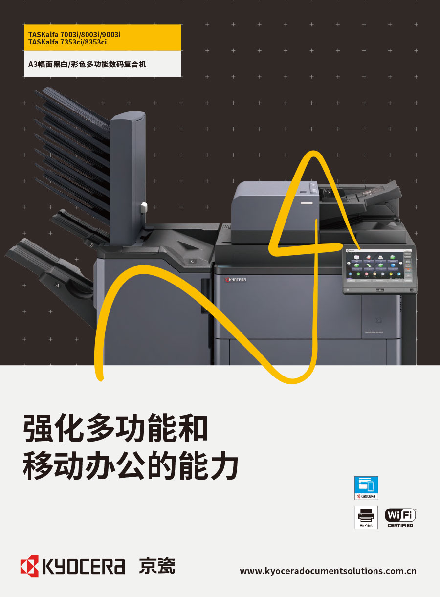 京瓷辦公信息系統(tǒng)(中國)有限公司主要負責彩色和黑白數碼復合機、彩色和黑白數碼激光打印機、生產型彩色噴墨印刷系統(tǒng)、辦公解決方案等系列辦公自動化設備的銷售。京瓷辦公設備將一如既往延續(xù)ECOSYS理念,始終站在時代前沿,以科技服務社會,堅持開發(fā)更能滿足時代需求、更為綠色的新銳產品,使用戶都能夠從中獲得更大的利益。