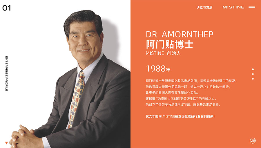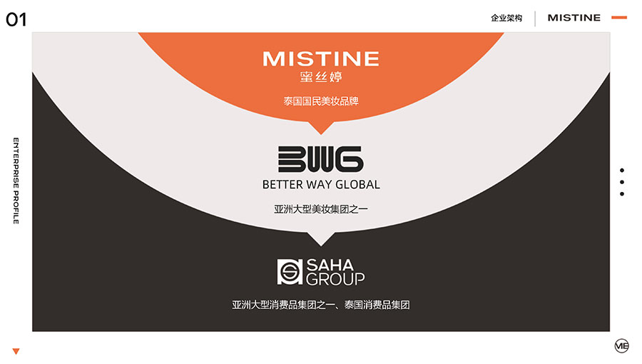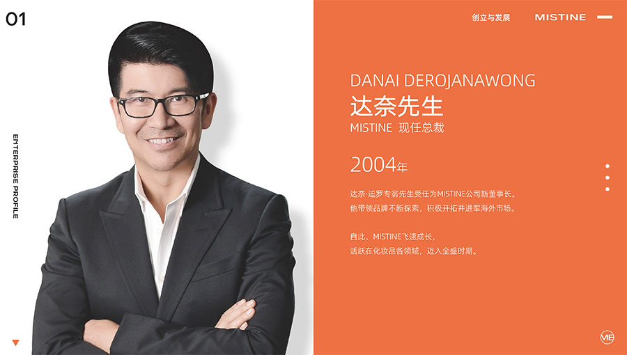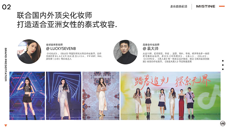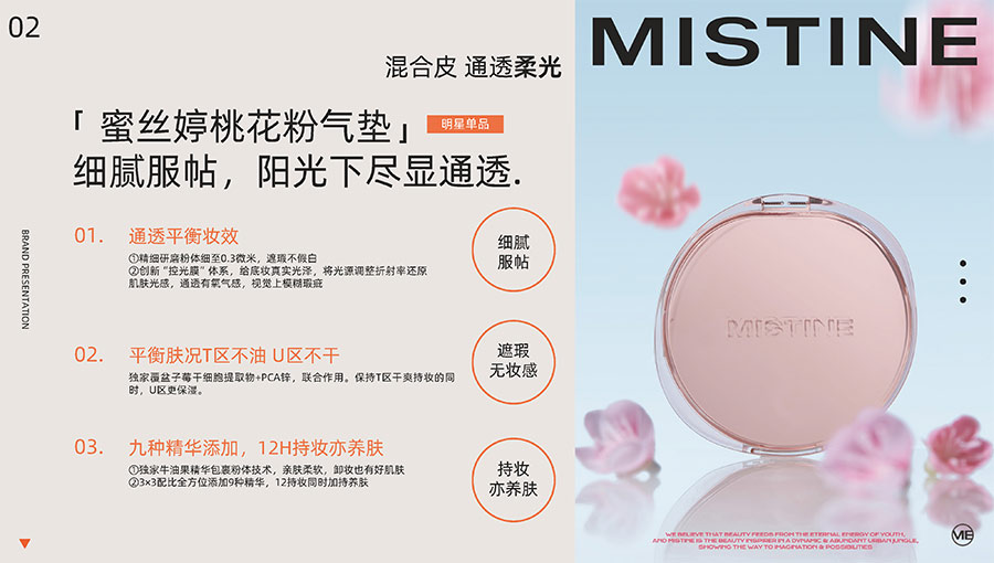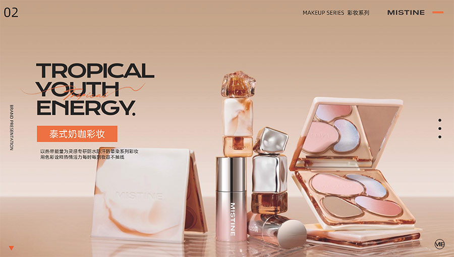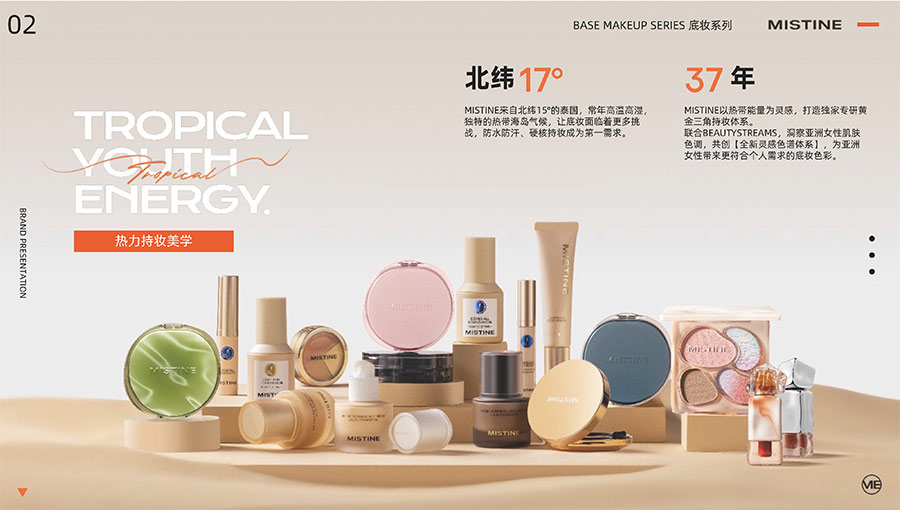 MISTINE蜜絲婷1988年始源于泰國,作為知名國際美妝品牌,擁有37年科研底蘊(yùn),產(chǎn)品種類涵蓋防曬、美妝、護(hù)膚、香水、個(gè)護(hù)五大類,擁有近6000多個(gè)單品暢銷全球20多個(gè)國家,專注為全球女性提供豐富、安全、高品質(zhì)的美妝產(chǎn)品。自2016年進(jìn)入中國后,MISTINE蜜絲婷以“熱帶青春能量美妝”為品牌定位,為年輕人打造更懂得他們的全新美妝產(chǎn)品,并傳遞獨(dú)特的健康活力生活方式。
