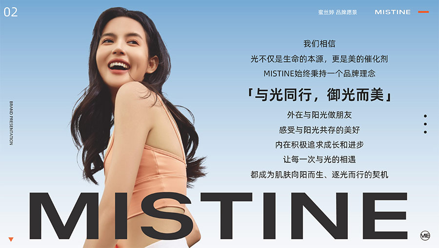 MISTINE蜜絲婷堅(jiān)持圍繞對“光”的研究,在光與防曬護(hù)膚、光與色彩妝容的產(chǎn)品應(yīng)用層面,研究光、理解光、樂享光,持續(xù)不斷地提供產(chǎn)品解決方案,滿足消費(fèi)者對防曬美白、潮流妝容、護(hù)膚健康的需求。