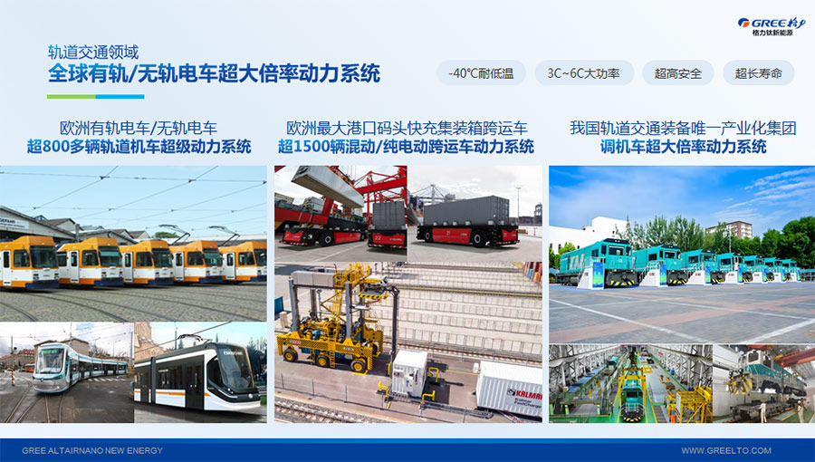 以完善的研發(fā)體系,格力鈦加快技術(shù)創(chuàng)新與產(chǎn)業(yè)升級(jí)的步伐。格力鈦研發(fā)的格力鈦電池安全性長(zhǎng)期領(lǐng)跑行業(yè),憑借具有高安全、大倍率、快充放、耐寬溫、長(zhǎng)壽命等特性,被選為“國(guó)家制造業(yè)單項(xiàng)冠軍產(chǎn)品”,廣泛應(yīng)用于新能源汽車以及工商業(yè)園區(qū)、通訊基站、電網(wǎng)調(diào)頻、軌道交通、風(fēng)光消納、船舶岸電、家庭住宅、軍事科研等儲(chǔ)能領(lǐng)域,具有廣闊的市場(chǎng)前景和應(yīng)用價(jià)值。目前,格力鈦儲(chǔ)能產(chǎn)品已在丹麥、瑞士、芬蘭等全球30多個(gè)國(guó)家和地區(qū)使用,新能源汽車產(chǎn)品在北京、杭州、武漢、成都、青島、哈爾濱、包頭、海口等全球240多座城市運(yùn)營(yíng),12年全球零電池事故安全運(yùn)行。