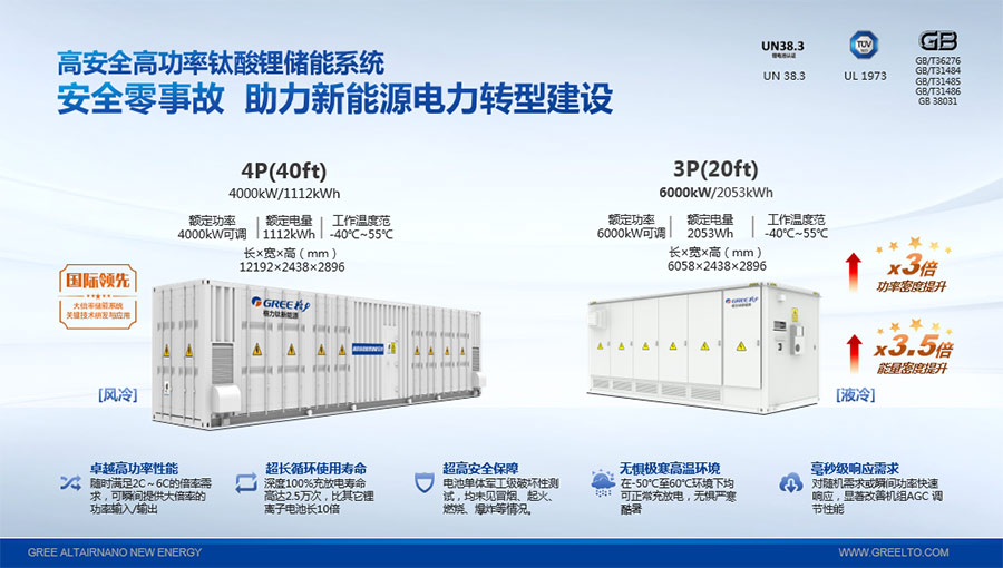 鈦酸鋰電池技術(shù)是新能源行業(yè)唯一獲得中國(guó)專利獎(jiǎng)金獎(jiǎng)的鋰電池產(chǎn)品技術(shù),其應(yīng)用于儲(chǔ)能電池和動(dòng)力電池具有超高安全性,在快充放、耐寬溫、長(zhǎng)壽命等方面同樣具有卓越的性能。格力鈦電池系列產(chǎn)品具有不起火不爆炸高安全、6分鐘快充放、-50℃至60℃耐寬溫特性,循環(huán)充放電次數(shù)高達(dá)30000多次,使用壽命長(zhǎng)達(dá)30年。格力鈦電池經(jīng)利鋸切割、尖針穿刺、強(qiáng)力擠壓、電鉆沖孔、短路充放電、高溫加熱、槍擊等極限條件測(cè)試,均未發(fā)生冒煙、起火、燃燒、爆炸等現(xiàn)象。
