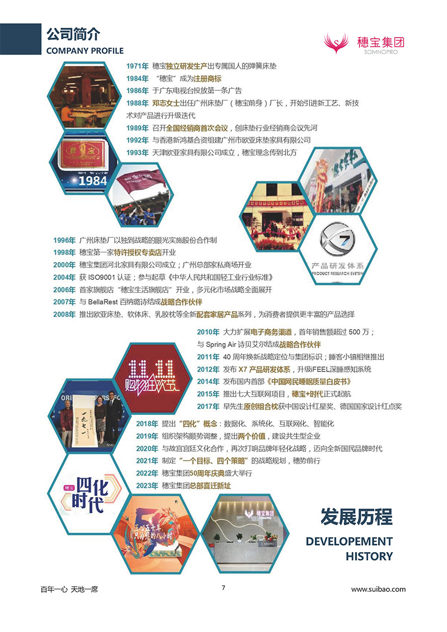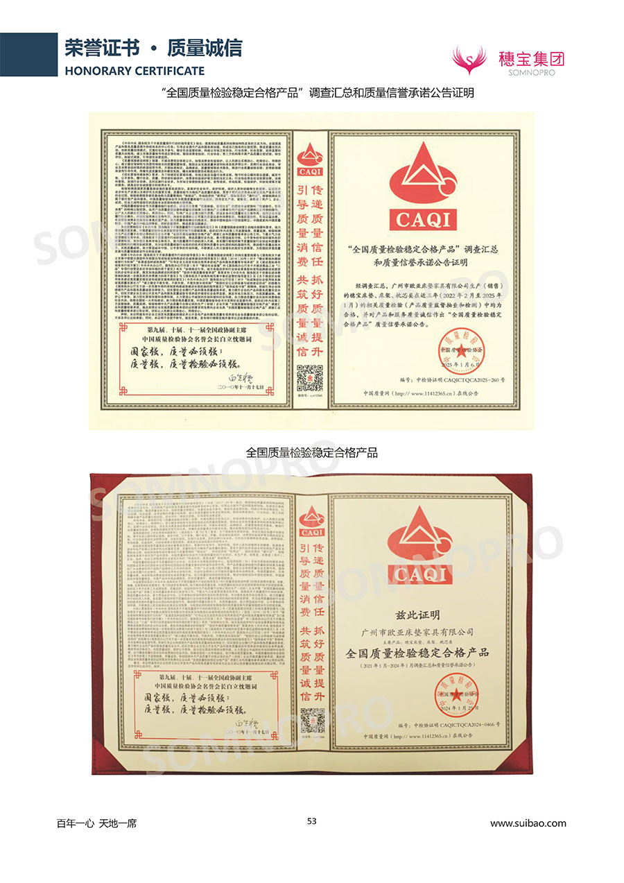 自1971年獨立研發(fā)生產(chǎn)出專屬國人的彈簧床墊,穗寶關(guān)于優(yōu)質(zhì)深度睡眠的研究已有半個世紀的歷史。穗寶一直專注床墊,專注中國消費者的睡眠研究,針對中國人特點進行優(yōu)化創(chuàng)新,不斷提升國人的睡眠體驗,只為成就每個晚上8小時的優(yōu)質(zhì)深度睡眠。憑借不斷革新的研發(fā)科技和深受消費者信賴的產(chǎn)品品質(zhì),穗寶集團旗下品牌和產(chǎn)品屢獲國內(nèi)外大獎,連續(xù)20年榮膺中國500最具價值品牌,品牌價值高達302.89億元。