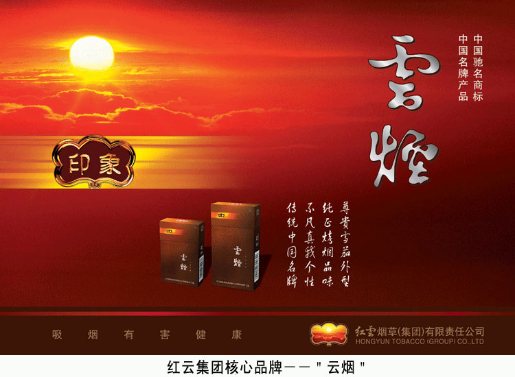 集團(tuán)主要產(chǎn)品有“云煙”、“小熊貓”、“紅山茶”、“石林”、“香格里拉”、“福”等十多個(gè)品牌,其中10個(gè)品牌入選“中國(guó)卷煙百牌號(hào)”名錄。核心品牌“云煙”榮獲“中國(guó)馳名商標(biāo)”和“中國(guó)名牌產(chǎn)品”稱(chēng)號(hào),連續(xù)8年(1998-2005)榮列“全國(guó)市場(chǎng)同類(lèi)產(chǎn)品十大暢銷(xiāo)品牌及最具競(jìng)爭(zhēng)力品牌”。目前,集團(tuán)正致力于將“云煙”品牌培育成為單品牌年創(chuàng)稅利超百億元的強(qiáng)勢(shì)品牌,將“紅山茶”品牌培育成為年產(chǎn)銷(xiāo)規(guī)模過(guò)百萬(wàn)箱的優(yōu)勢(shì)大品牌。