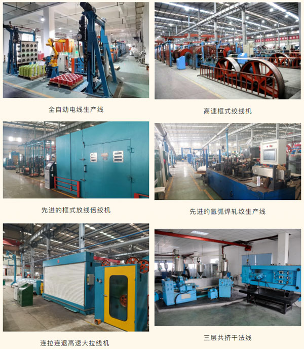 此外,公司車間生產(chǎn)設(shè)備也在不斷升級(jí)改造,擁有先進(jìn)的全自動(dòng)電線生產(chǎn)線(擠塑、成圈、包裝、碼垛一體機(jī))、三層共擠干法交聯(lián)線(配置德國(guó)SIKORA在線測(cè)偏儀),也具有連拉連退高速大拉線機(jī)、先進(jìn)的框式放線倍絞機(jī)、高速框式絞線機(jī)、先進(jìn)的氬弧焊軋紋生產(chǎn)線等自動(dòng)化設(shè)備,提高了公司裝備智能化、自動(dòng)化程度,為企業(yè)數(shù)字化改造奠定基礎(chǔ)。