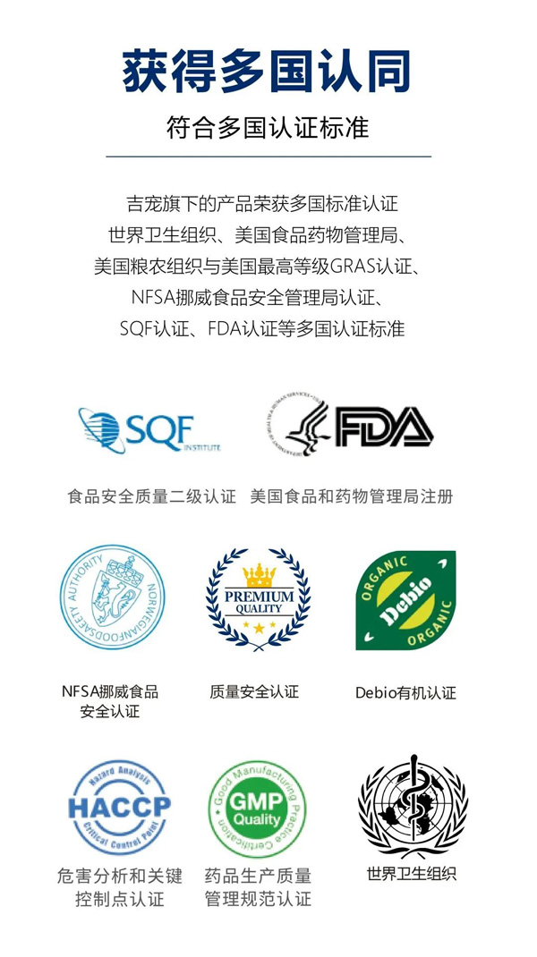 吉寵旗下的產(chǎn)品榮獲多國標(biāo)準(zhǔn)認(rèn)證