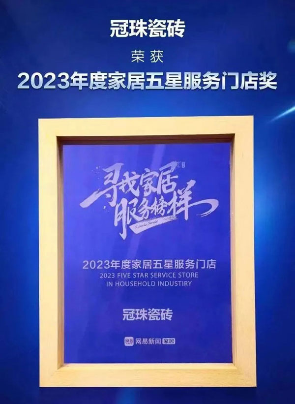 奪冠!冠珠瓷磚榮獲2023“年度家居行業(yè)服務(wù)榜樣”、“年度家居五星服務(wù)門店獎(jiǎng)”