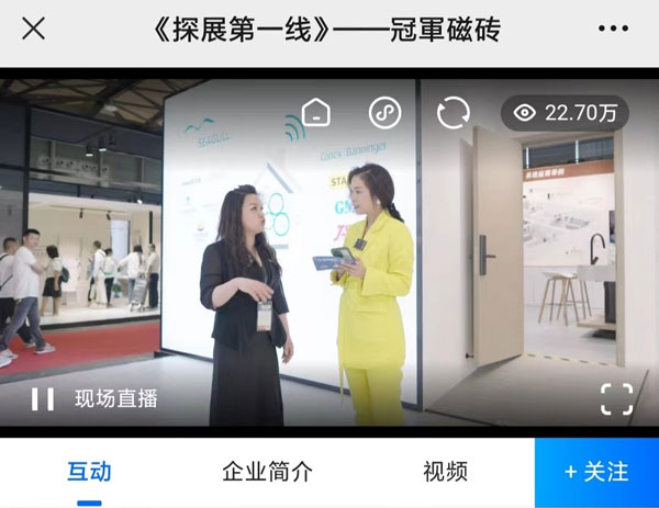 線上經(jīng)濟(jì)時(shí)代,新媒體平臺(tái)各行其道,借此展會(huì)契機(jī),冠軍磁磚攜手騰訊家居|貝殼頻道開展“探展第一線”線上直播活動(dòng),由設(shè)計(jì)好物·主理人、騰訊家居|貝殼頻道總裁 張英梅(YOYO)傾情出鏡,冠軍磁磚巖板中心副總經(jīng)理 唐小敏親自上陣。騰訊家居|貝殼平臺(tái)直播,“智造聯(lián)盟”、“冠軍磁磚官方”等賬號平臺(tái)同步轉(zhuǎn)播,截止直播結(jié)束,線上觀看量超230000人次。從展位帶逛、巖板應(yīng)用區(qū)展示到冠軍巖板優(yōu)勢分析解讀及品牌戰(zhàn)略布局,帶線上觀眾沉浸式觀展,直播間實(shí)時(shí)粉絲互動(dòng),線上氣氛火熱。