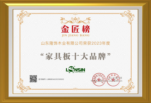 品牌加冕,榮耀所歸!隆飾板材斬獲“2023年度家具板十大品牌”榮譽(yù)獎(jiǎng)項(xiàng)