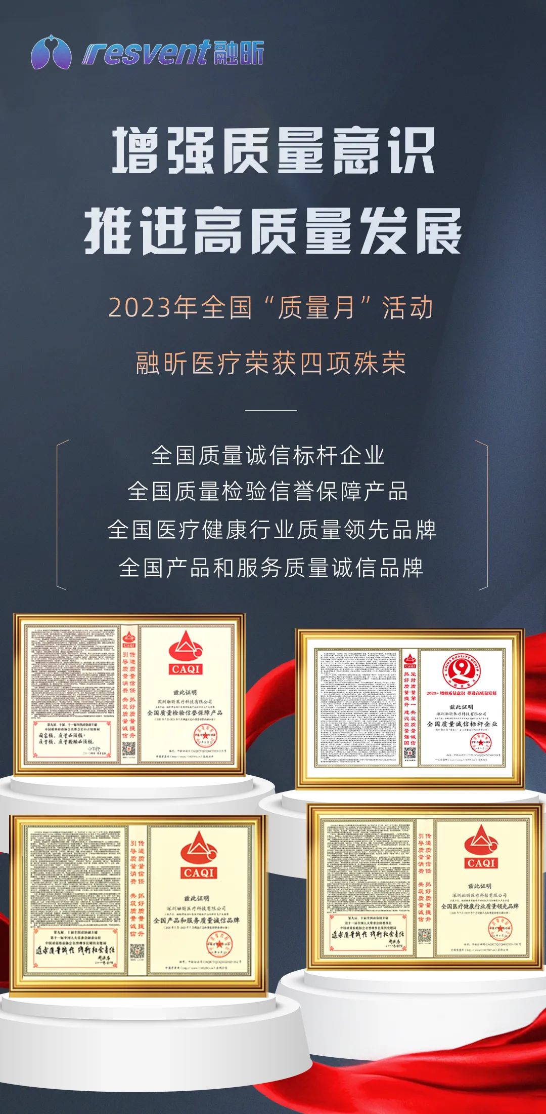 融昕醫(yī)療榮獲2023全國“質(zhì)量月”多項殊榮!