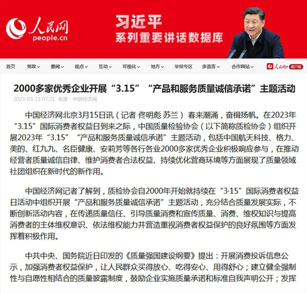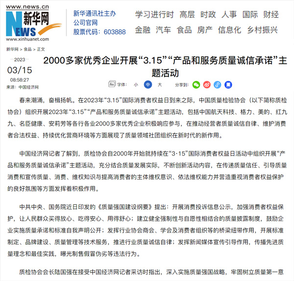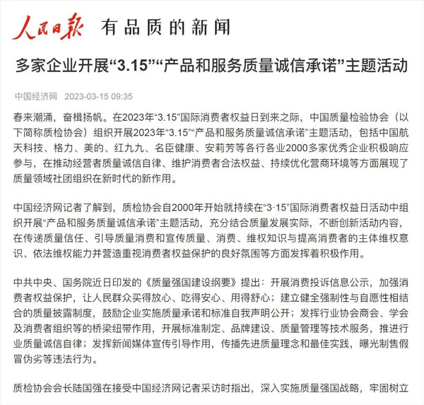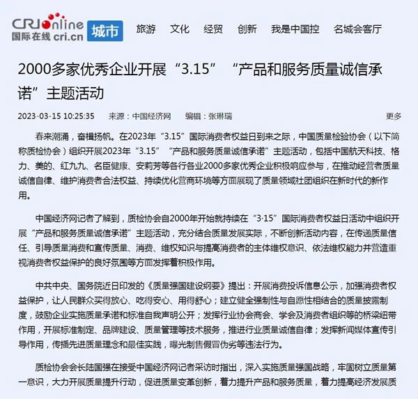 ——中國質(zhì)量檢驗協(xié)會組織2000多家優(yōu)秀典范企業(yè)開展“3.15”產(chǎn)品和服務(wù)質(zhì)量誠信承諾活動