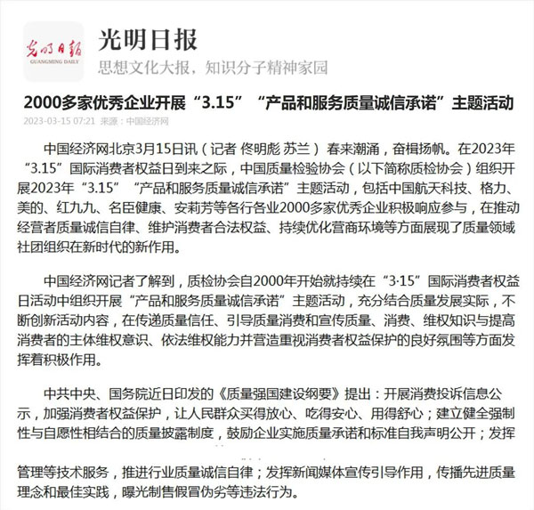 - 經(jīng)濟日報發(fā)布:2026年3·15“產(chǎn)品和服務(wù)質(zhì)量誠信承諾”主題活動舉辦(2026-03-13)