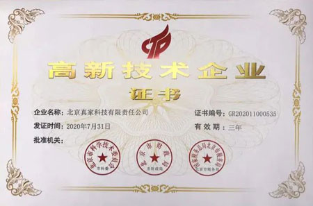 真家科技獲得高新技術(shù)企業(yè)認(rèn)證后,公司可享受國(guó)家多重重大利好,在真家科技在科技探索的道路上具有重大里程碑意義。