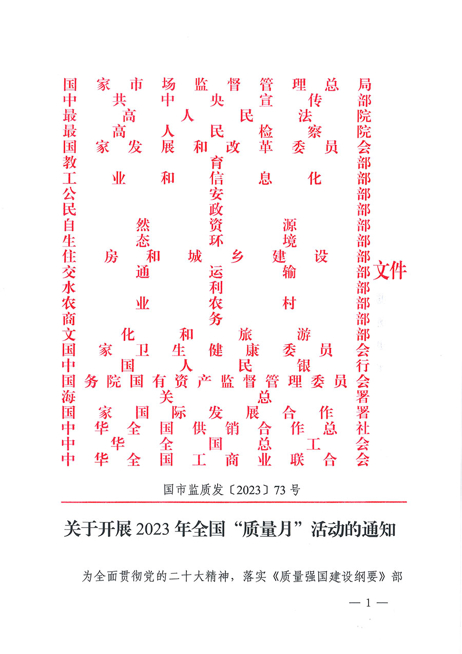 市場(chǎng)監(jiān)管總局等25個(gè)部門(mén)聯(lián)合開(kāi)展全國(guó)“質(zhì)量月”活動(dòng)