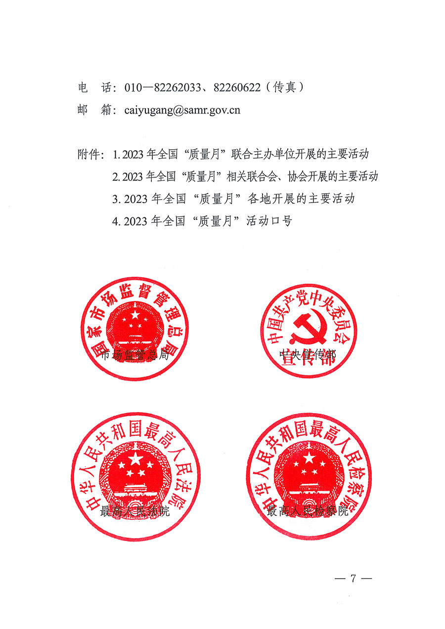 市場(chǎng)監(jiān)管總局聯(lián)合中央宣傳部、最高人民法院、最高人民檢察院、國(guó)家發(fā)展改革委、教育部、科技部等25個(gè)部門(mén)定于2023年9月聯(lián)合開(kāi)展全國(guó)“質(zhì)量月”活動(dòng)。圍繞“增強(qiáng)質(zhì)量意識(shí) 推進(jìn)高質(zhì)量發(fā)展”的主題,各部門(mén)將在質(zhì)量月期間開(kāi)展多項(xiàng)活動(dòng):中央宣傳部結(jié)合“劍網(wǎng)2023”專(zhuān)項(xiàng)行動(dòng)加大網(wǎng)絡(luò)侵權(quán)盜版打擊力度;最高人民法院將發(fā)布一批食品藥品安全刑事審判典型案例;最高人民檢察院依法懲治侵權(quán)假冒犯罪,開(kāi)展危害食品藥品安全犯罪案件辦理專(zhuān)題培訓(xùn),發(fā)布知識(shí)產(chǎn)權(quán)檢察綜合保護(hù)指導(dǎo)性案例;工業(yè)和信息化部組織開(kāi)展全國(guó)質(zhì)量標(biāo)桿經(jīng)驗(yàn)交流活動(dòng),舉辦“中國(guó)制造”品牌故事大賽;民政部結(jié)合“養(yǎng)老服務(wù)監(jiān)管效能提升年”活動(dòng),組織開(kāi)展民政領(lǐng)域相關(guān)標(biāo)準(zhǔn)宣貫工作;自然資源部聯(lián)合市場(chǎng)監(jiān)管總局推動(dòng)開(kāi)展2023年自然資源檢驗(yàn)檢測(cè)機(jī)構(gòu)能力驗(yàn)證工作和“雙隨機(jī)、一公開(kāi)”監(jiān)督檢查工作,開(kāi)展重要標(biāo)準(zhǔn)宣貫。市場(chǎng)監(jiān)管總局將舉辦限制商品過(guò)度包裝宣傳發(fā)布活動(dòng),開(kāi)展“計(jì)量服務(wù)中小企業(yè)行”,組織“全國(guó)檢驗(yàn)檢測(cè)機(jī)構(gòu)開(kāi)放日”活動(dòng),圍繞綠色產(chǎn)品認(rèn)證、有機(jī)產(chǎn)品認(rèn)證開(kāi)展相關(guān)宣傳周活動(dòng)。