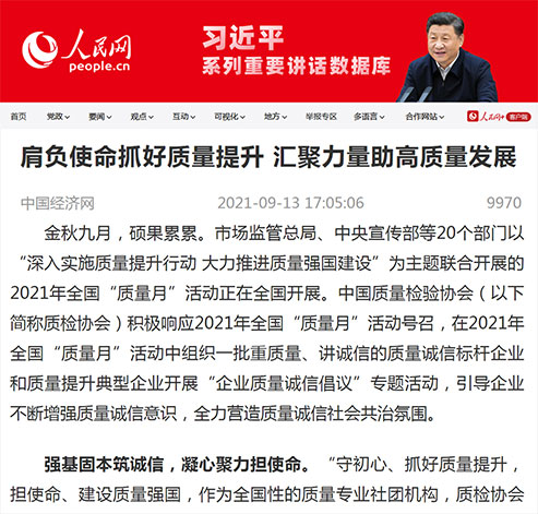 人民網(wǎng):肩負(fù)使命抓好質(zhì)量提升 匯聚力量助高質(zhì)量發(fā)展