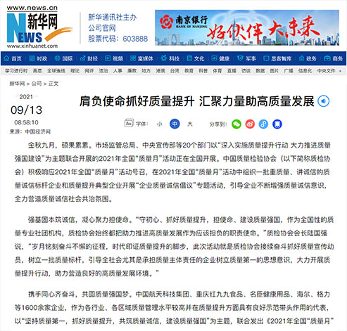 新華網(wǎng):肩負(fù)使命抓好質(zhì)量提升 匯聚力量助高質(zhì)量發(fā)展